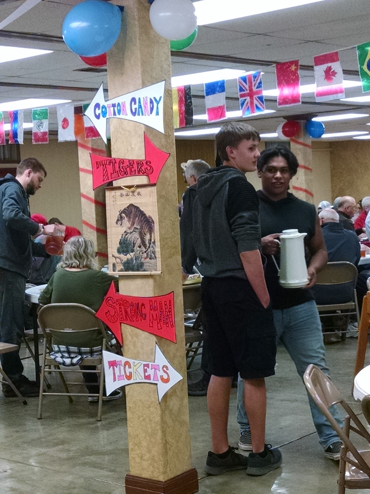 Fellowship Hall was decorated, and the youth and many of the sponsors were wearing circus related costumes.